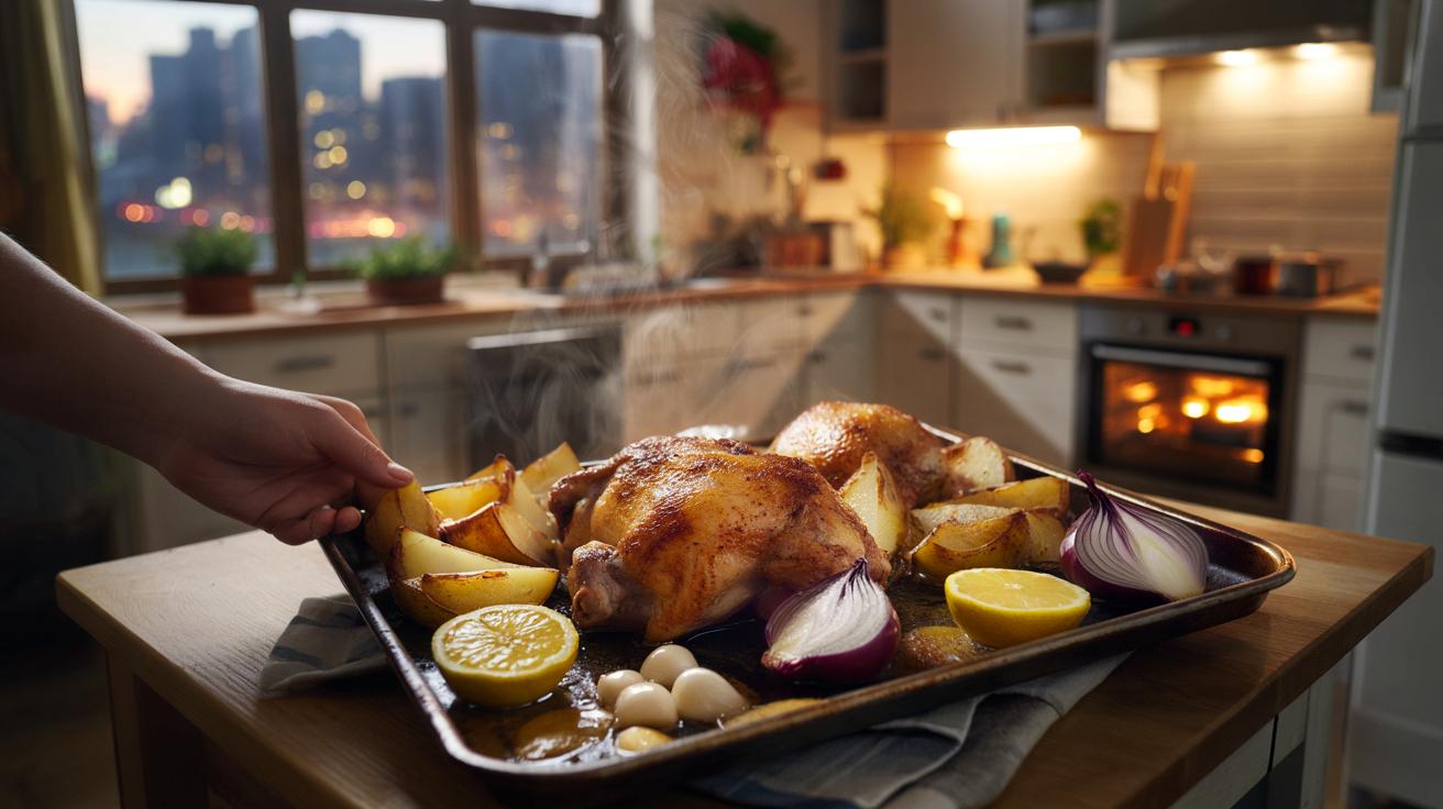 One-pan comfort Chicken, potatoes, onions, garlic, and lemon roasted together on a single tray Less cleaning, more flavor, and a calmer evening routine